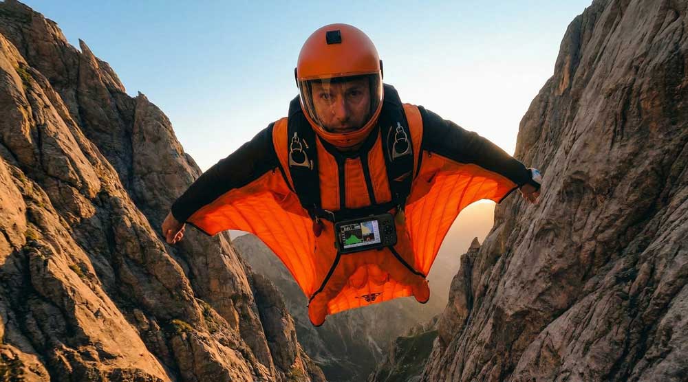 Wingsuit-Flieger in einer Schlucht verdeutlicht Risikoverhalten und verkürzte Lebenserwartung bei ADHS Erwachsene.